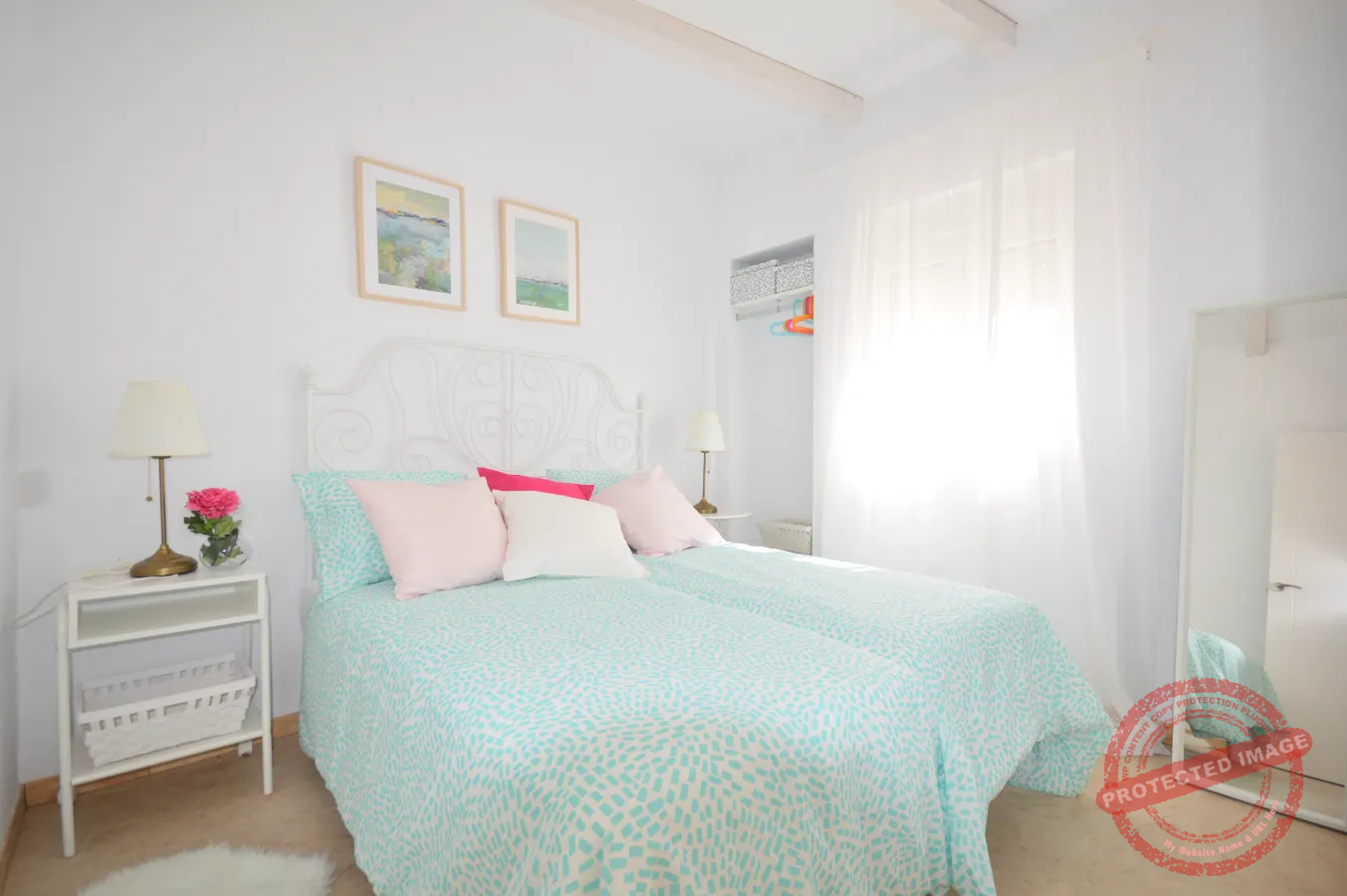 El dormitorio cuenta con dos camas individuales y una cama supletoria, permitiendo alojar hasta tres personas. El apartamento es una opción especialmente adecuada para parejas que deseen disfrutar del encanto de alojarse en un barrio tradicional, caracterizado por sus patios llenos de flores y su estilo andaluz.