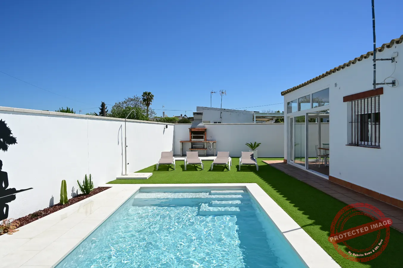 El chalet se encuentra a unos 4 kilómetros de la playa.
