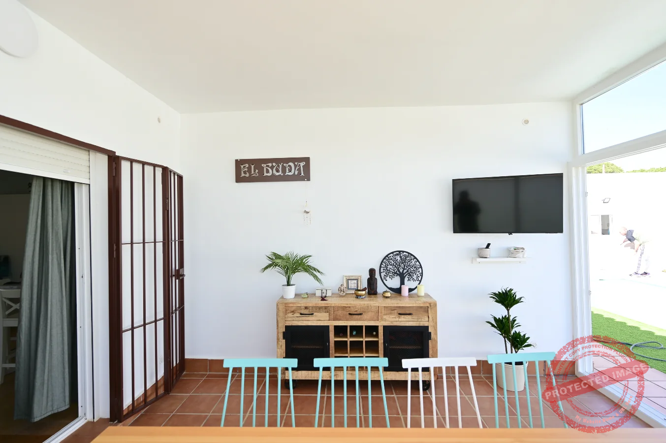 En el exterior, la casa ofrece una piscina privada, zona de jardín, barbacoa y un porche con cerramiento corredero, proporcionando un espacio adecuado para disfrutar al aire libre en cualquier momento. También cuenta con aparcamiento dentro de la parcela y garaje privado.