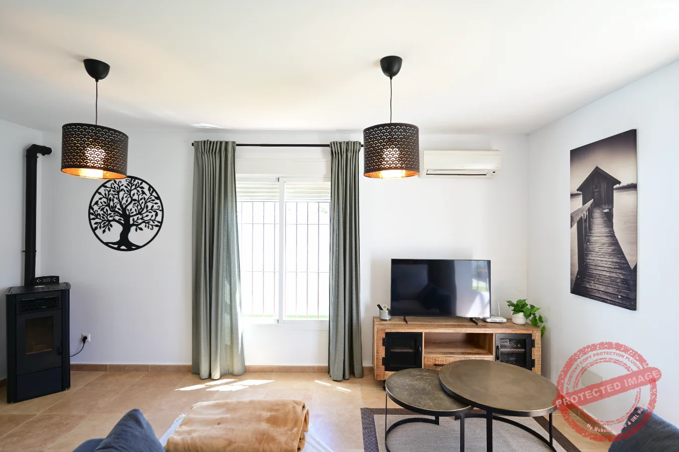 La vivienda se distribuye en tres dormitorios, junto a salón con cocina integrada y dos cuartos de baño, ofreciendo un espacio cómodo y bien organizado para la estancia. Dispone de aire acondicionado, calefacción, conexión wifi y televisión, además de contar con el equipamiento necesario para el uso diario.