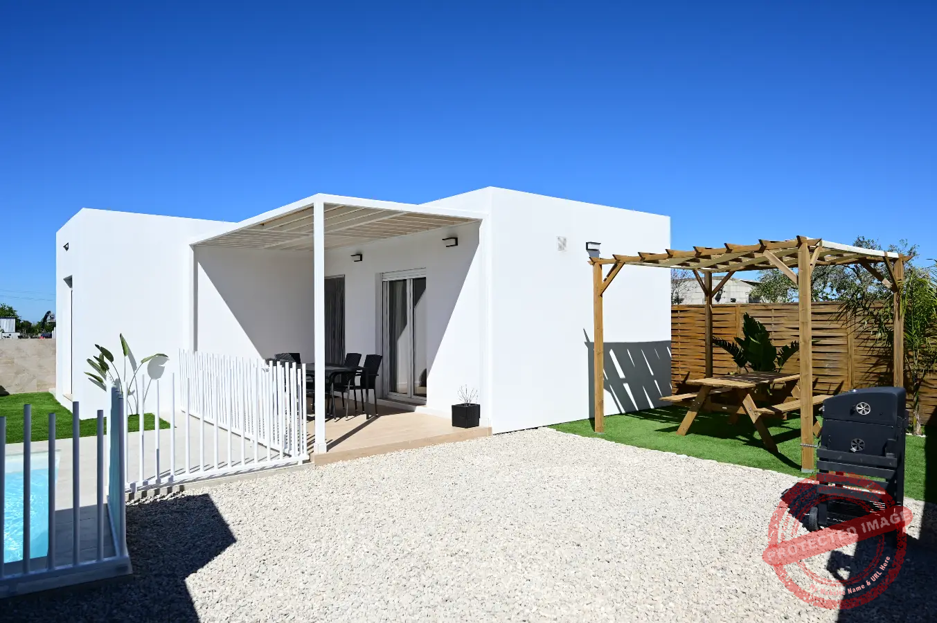 Uno de sus principales atractivos es su piscina privada, perfecta para los días de verano, junto con la terraza y la zona exterior. Además, dispone de aparcamiento privado, algo muy práctico en temporada alta.
