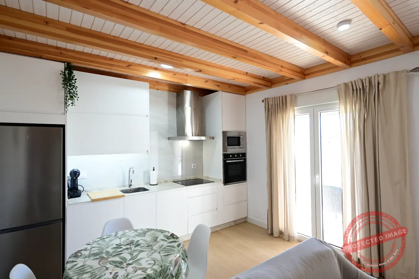 La vivienda tiene capacidad para 4 personas y se distribuye en dos dormitorios, un salón con cocina integrada totalmente equipada y un baño completo. La conexión con la terraza exterior aporta comodidad y espacio durante la estancia.