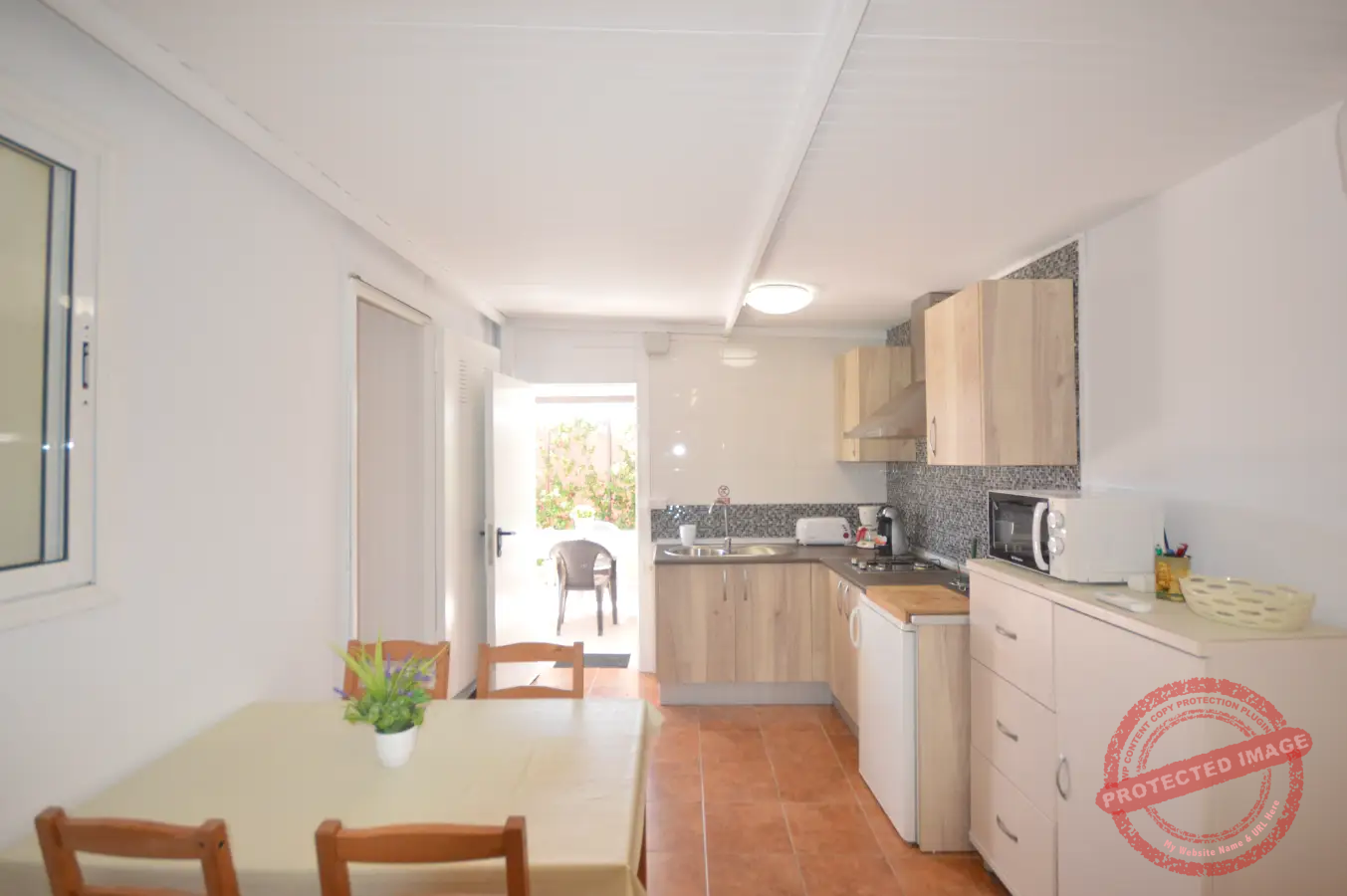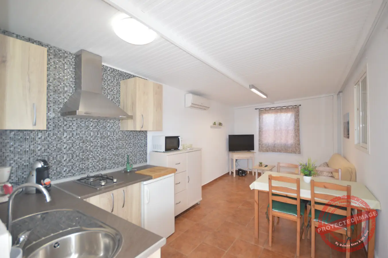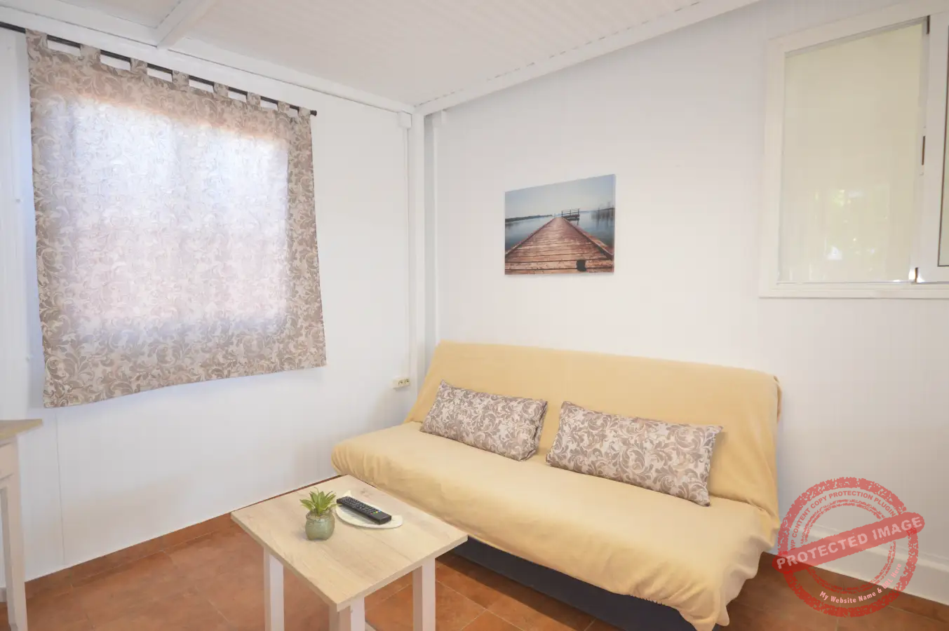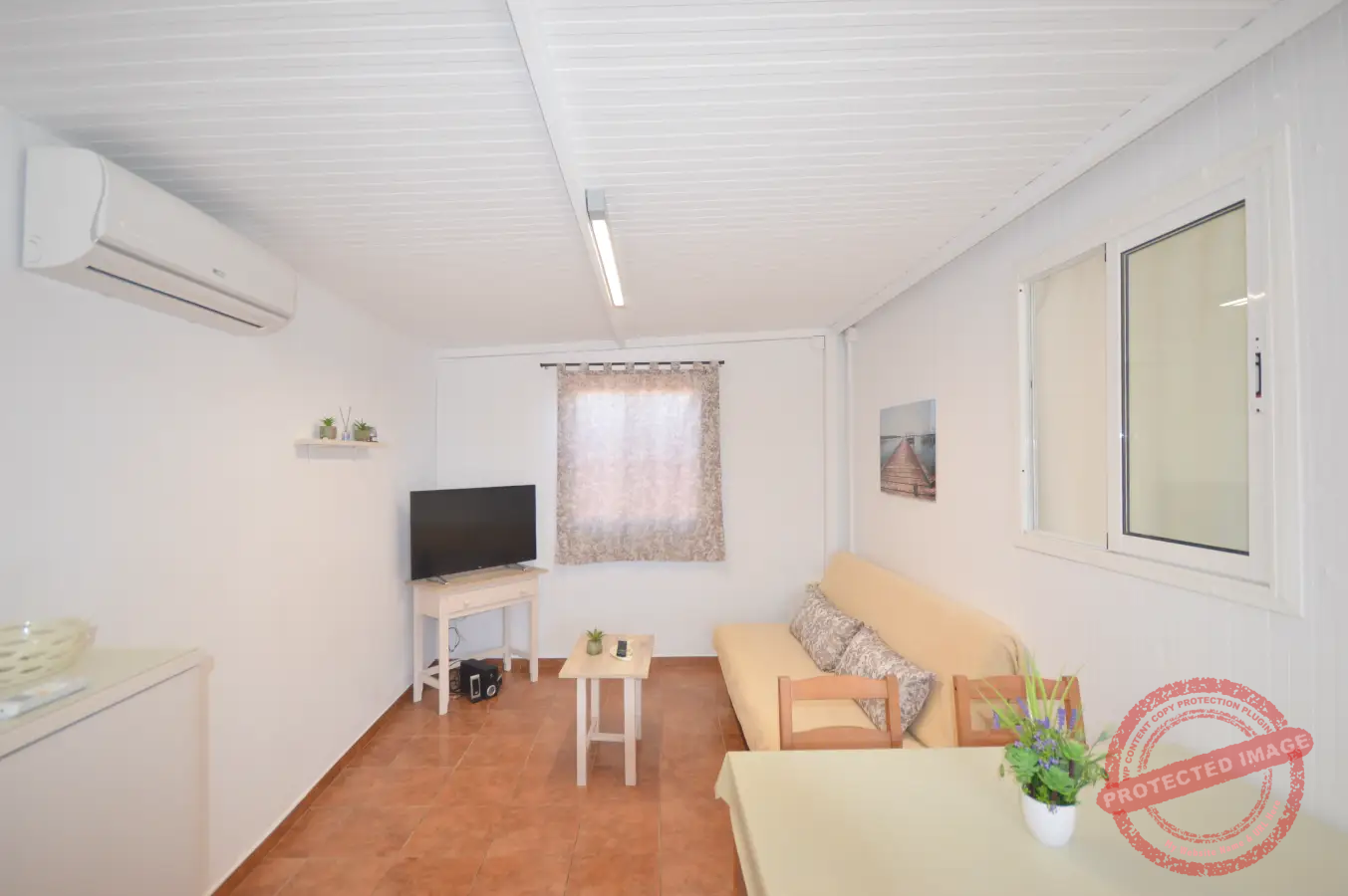 La vivienda tiene capacidad para hasta cinco personas y se distribuye en un dormitorio, además de sofá cama en el salón y opción de cama supletoria. Dispone de un espacio de salón con cocina integrada y un cuarto de baño, ofreciendo una distribución práctica para la estancia.