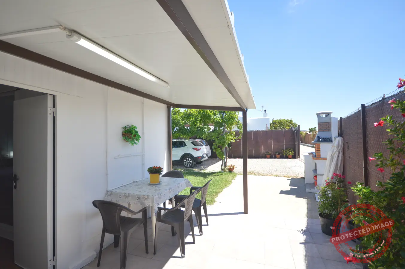En el exterior, la casa cuenta con jardín, barbacoa y zona de aparcamiento privado, proporcionando un espacio cómodo para disfrutar al aire libre.