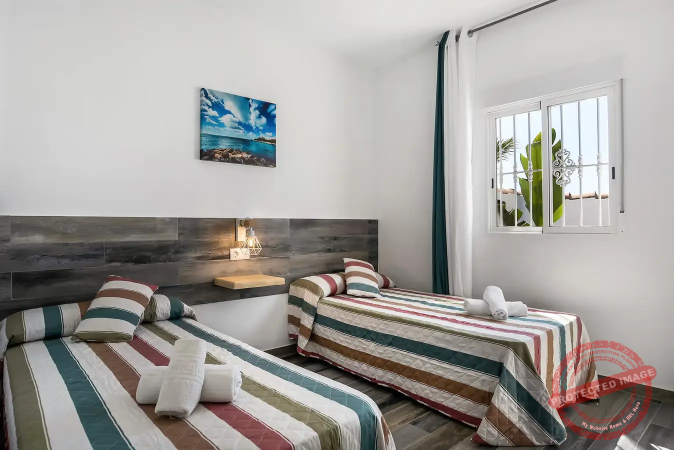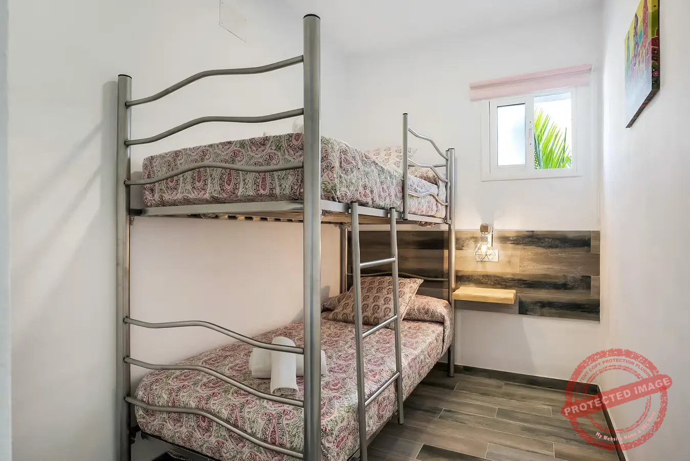 El interior se distribuye en cocina-comedor totalmente equipada, con todo el menaje necesario, salón con wifi, tres dormitorios con capacidad para seis personas y un cuarto de baño. Tanto la vivienda como el equipamiento son nuevos, ya que todo está a estrenar.