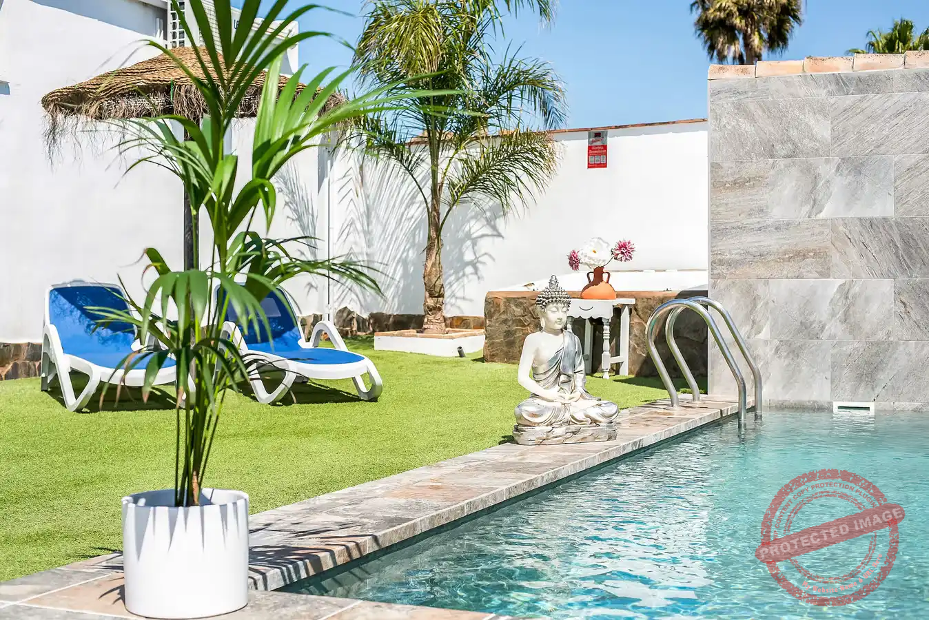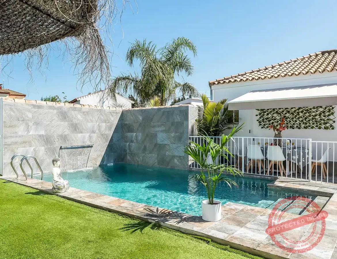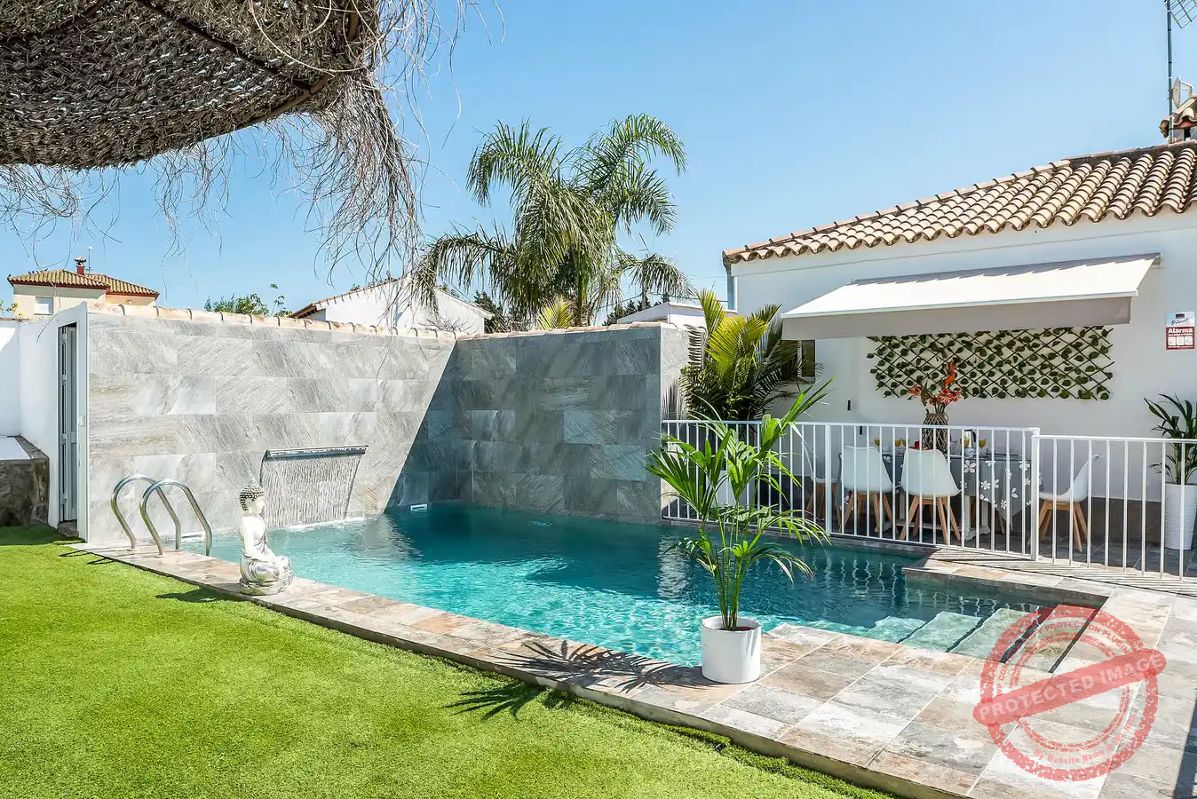La vivienda dispone de piscina privada y cuenta además con un jacuzzi interior con agua caliente y sistema de burbujas, ofreciendo un espacio adicional para el descanso y la relajación.